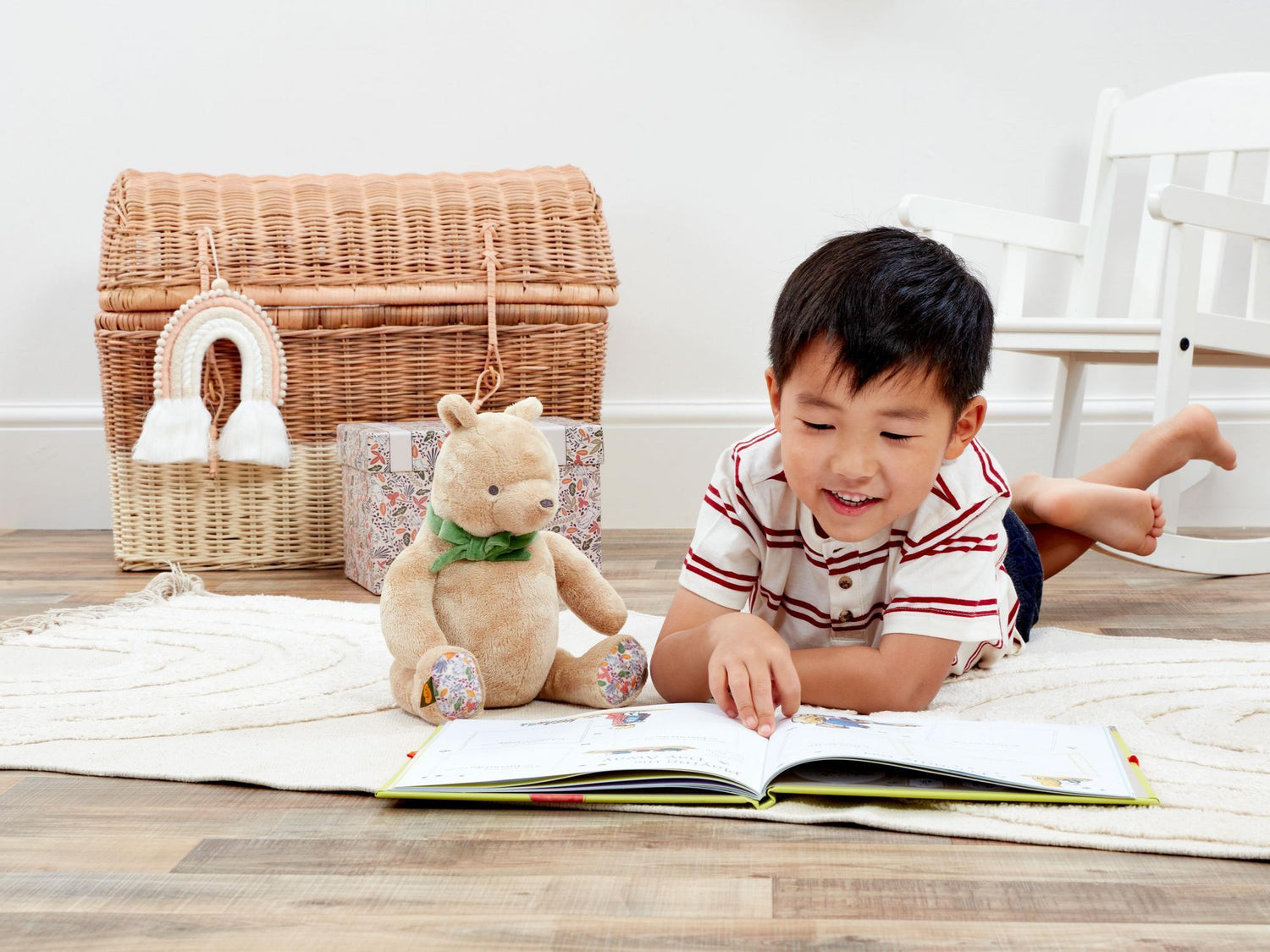 This beautiful Winnie the Pooh brings to life A.A Milne's story-telling and is the perfect cuddly friend for story time, bedtime and playtime! This adorable bear is made from super soft fabrics to make sure he gives the best hugs, his paws feature a woodland pattern fabric. This gorgeous Winnie the Pooh makes an adorable lifetime keepsake. Made with sustainable recycled plush fabric and the stuffing is produced from recycled plastic bottles!