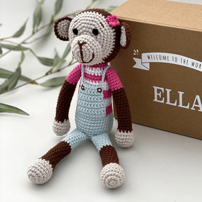 Cheeky Monkey is super-soft and always smiling. Hand crochet in beautiful bold colours, it makes the perfect gift for any occasion for babies and little children.