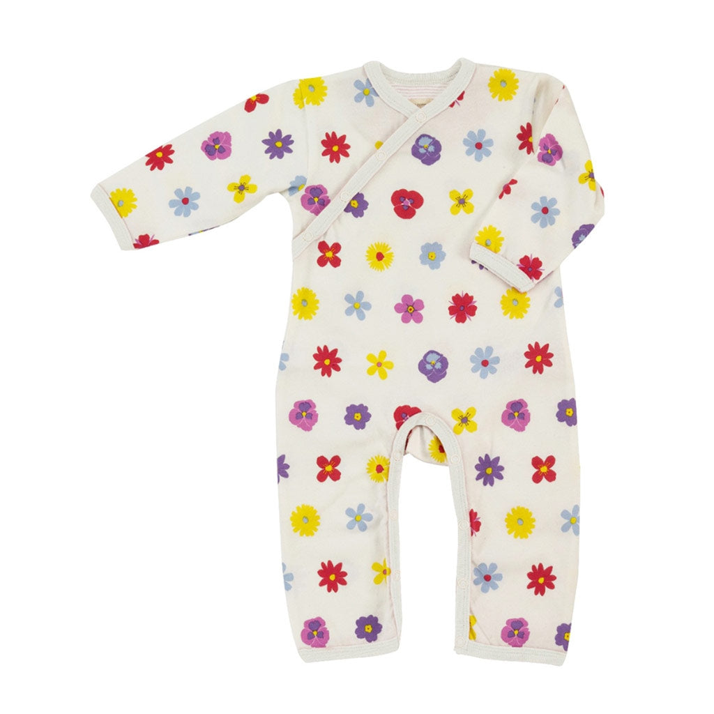 A top quality pretty organic Pansy Flower romper from Pigeon Organics: