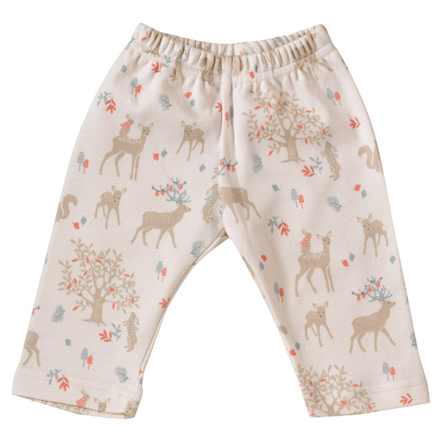 These organic leggings in soft print interlock by Pigeon Organics are fun and practical. With a beautiful woodland deer design, they are super soft and snuggly, perfect for all day wear to keep your little one warm.