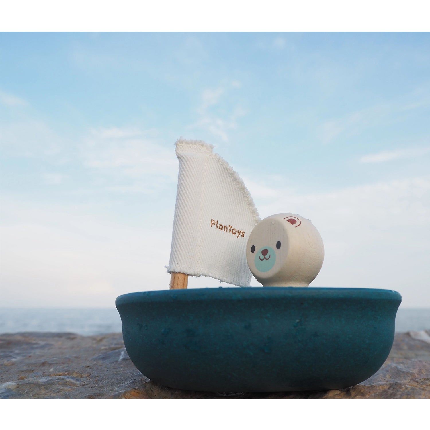 Set sail for adventure with the Plan Toys Polar Bear Sailing Boat, an adorable little vessel ready to glide through your bathtub or any water play scene.