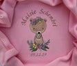 Beautifully embroidered with a stunning 'Floral Bear' design and baby's name (and date of birth, etc.) Placed slightly down from the blanket's centre - if you would like the embroidery in a bottom corner on the diagonal please request at checkout.