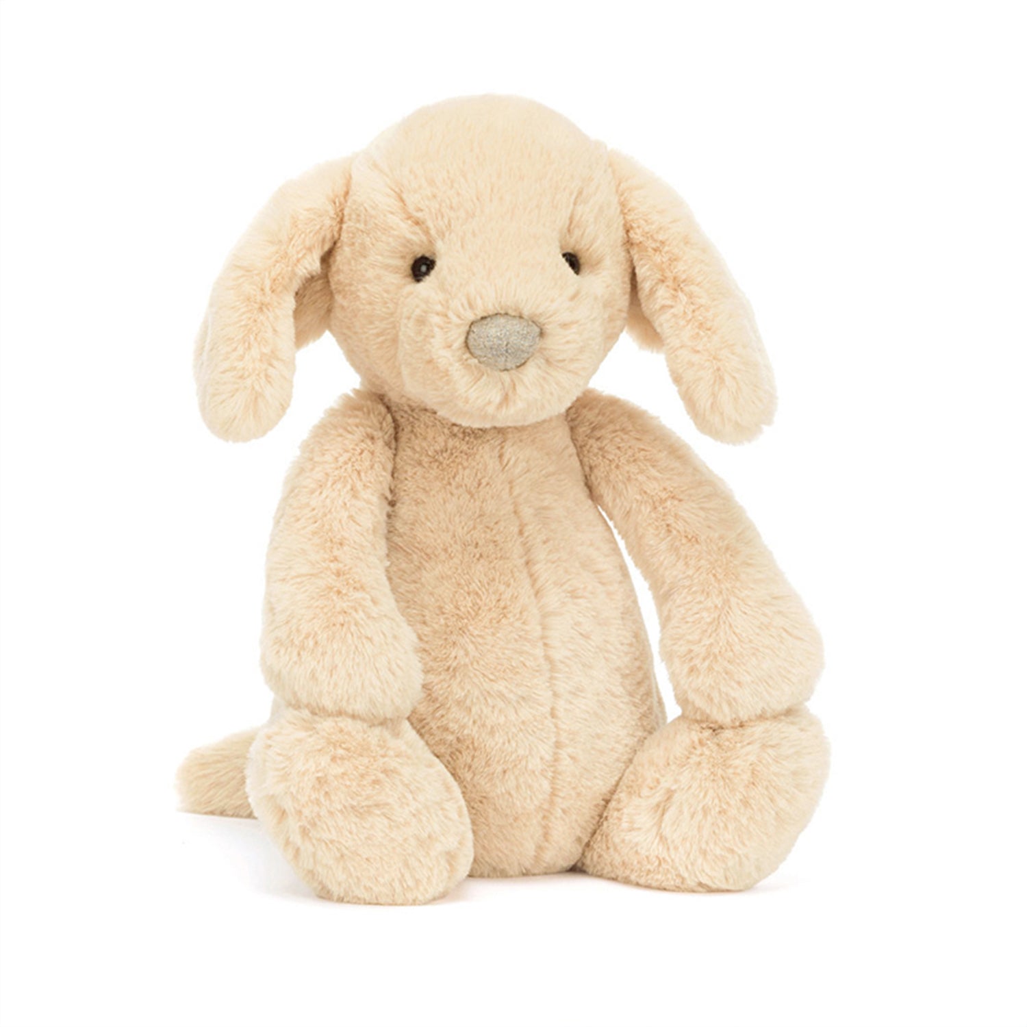 Dressed in sumptuously soft honey-colored fur and boasting a delightful glittery jersey nose, this cuddly companion is irresistibly endearing. Orlando's adorably long limbs are perfectly designed for the most comforting of hugs, making him an ideal pet for snuggling. This sweet puppy is a thoughtful and delightful present for anyone who adores dogs.