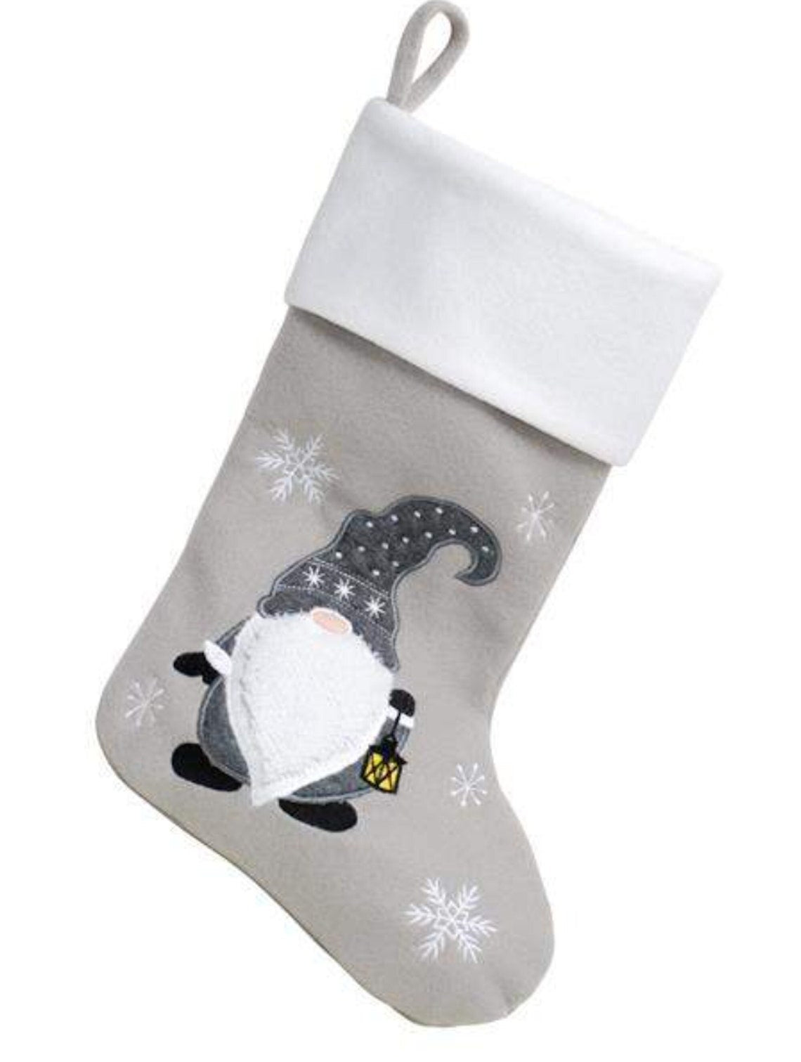 Gnome Deluxe Christmas Grey Stocking - Personalised