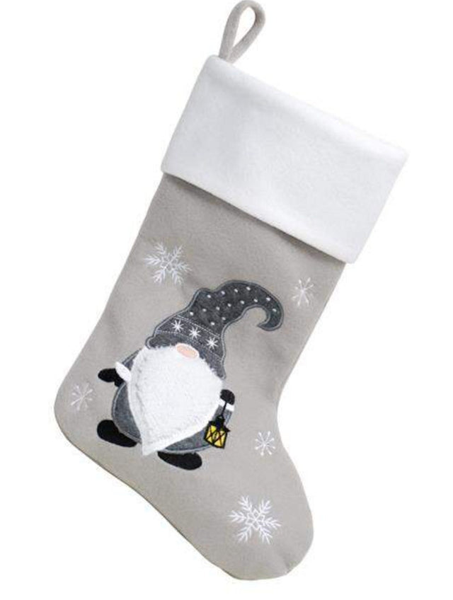 A beautiful deluxe appliquéd Nordic Gonk Style Christmas Stocking - Grey festive snowy Gnome design!