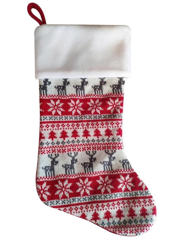 A lovely fully lined Christmas knitted style stocking in a reindeer and snowflake pattern.