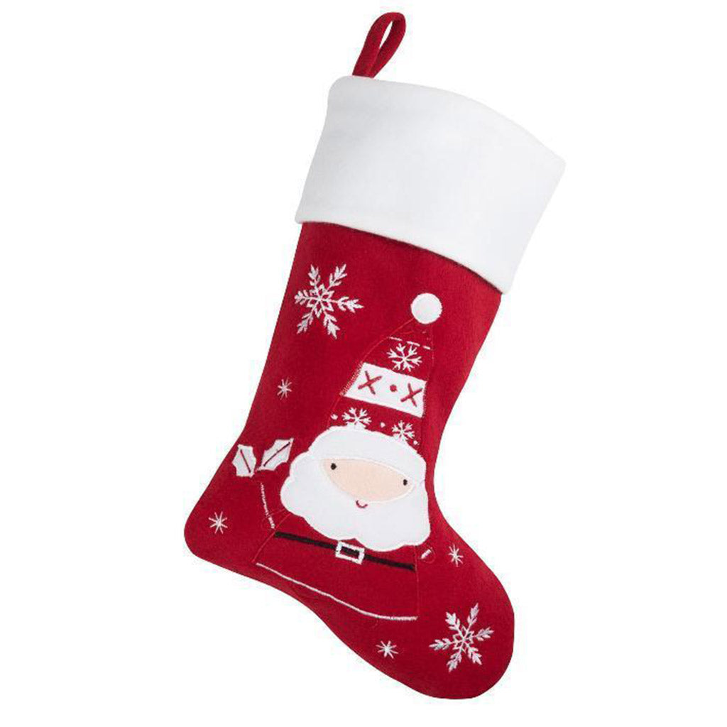 A deluxe red and white appliquéd Christmas Stocking with a beautiful nordic Santa Claus design.