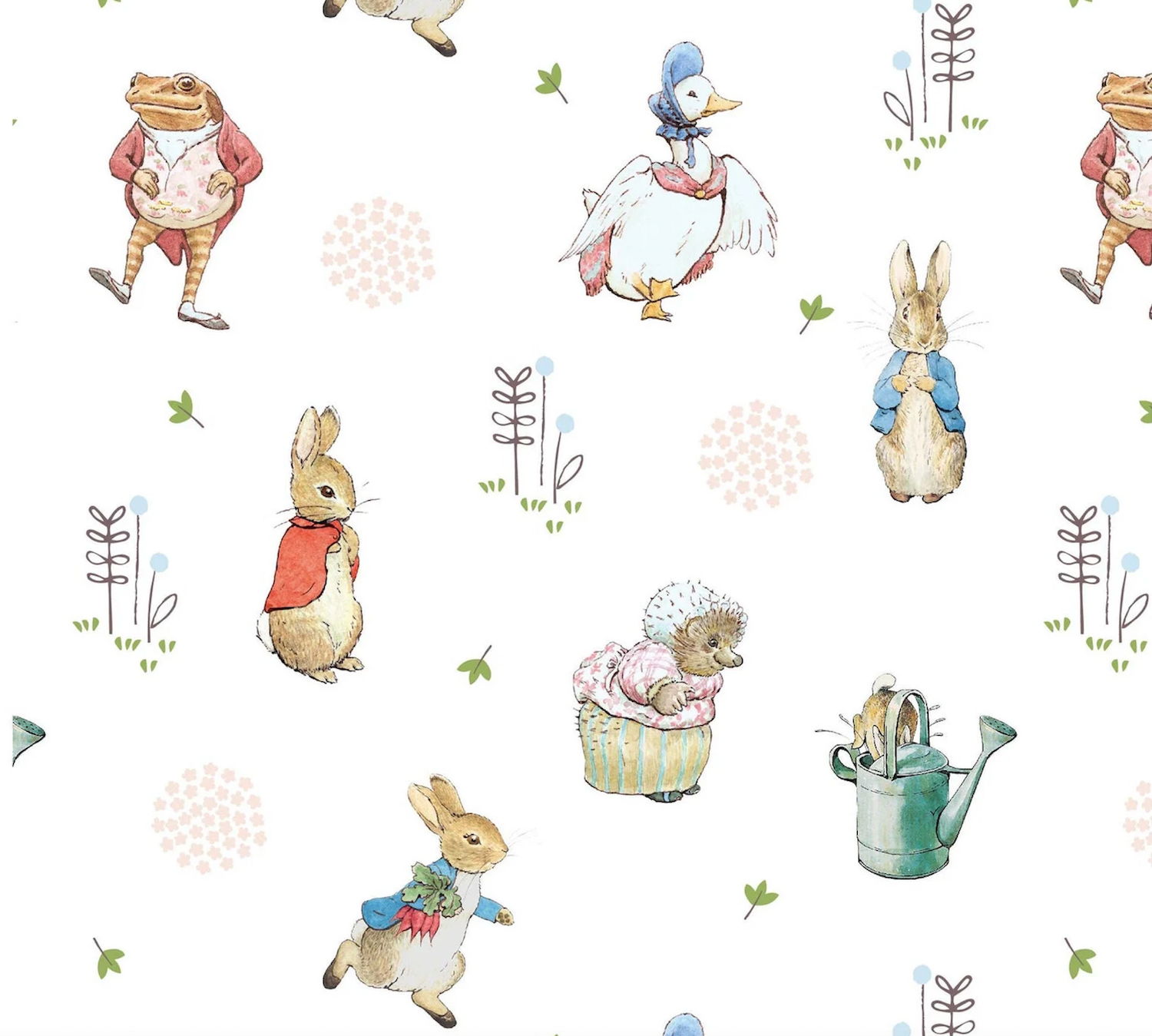 Made with stunning printed Peter Rabbit and friends soft 100% cotton with illustrations from the famous Beatrix Potter story books. Finished with matching quality double sided satin ribbon tags - if you would like any preferred colour scheme for the ribbons; pinks, blues, brown, etc. please just let me know.