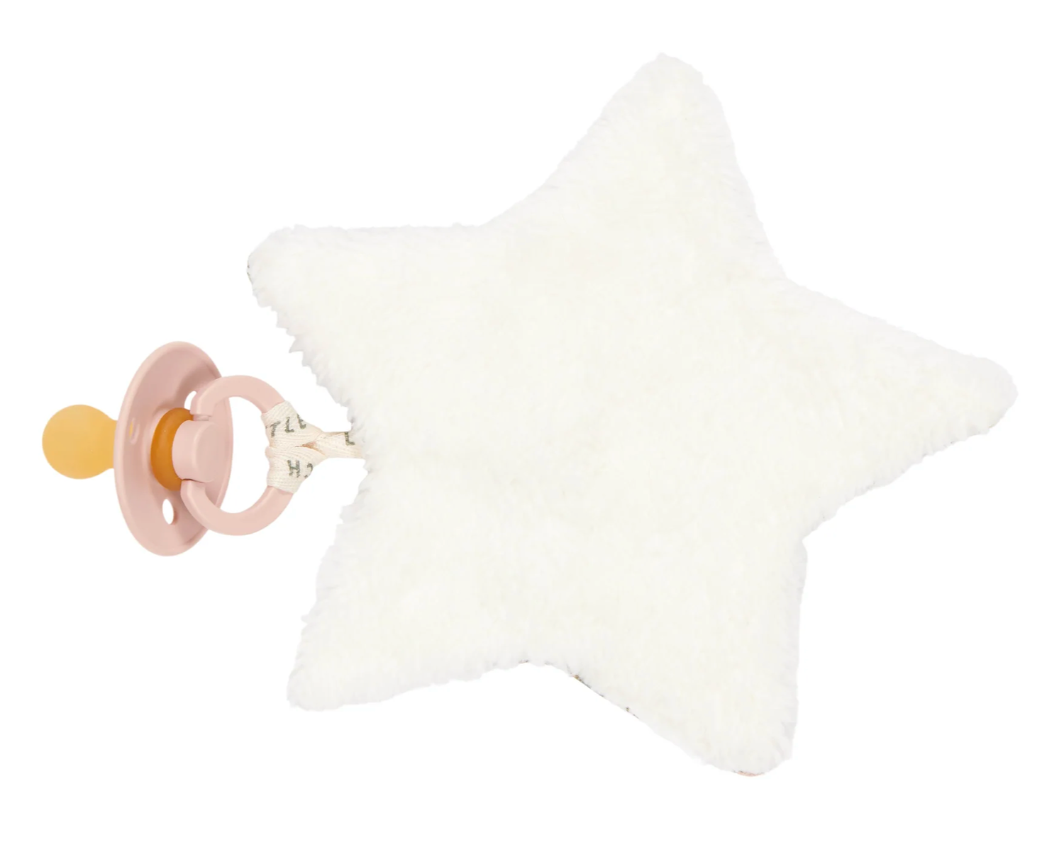 The ultra-soft Little Dutch pacifier cloths for babies and toddler have a cotton print on the front and deliciously soft teddy cloth on the back. They are wonderful to cuddle and play with!
