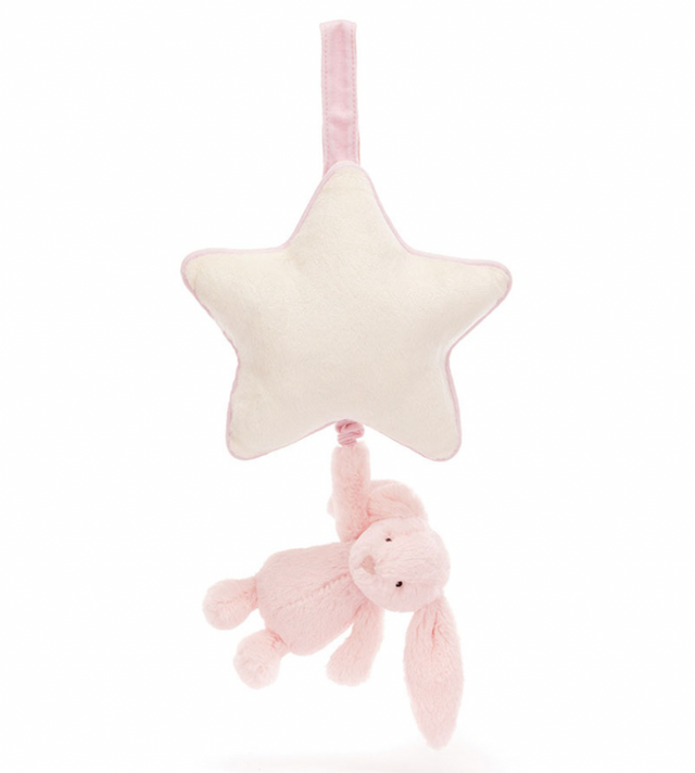 An enchanting newborn gift, let babies dream sweetly with a Bashful Baby Pink Bunny Musical Pull. The most loved Bashful Bunny, in soft fur made from recycled fibres, can be gently pulled to hear an original Jellycat lullaby.