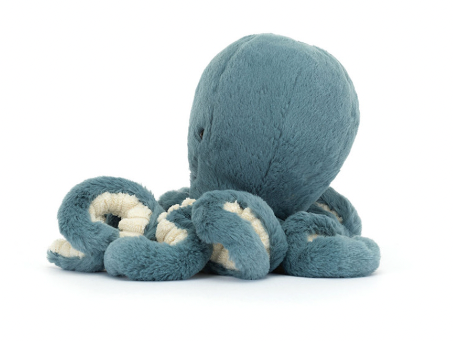 Storm Octopus is a fantastic soft toy - with eight amazing tentacles! Squishy and cheery in a beautiful teal colour and scruffled cream fur beneath, this softy is perfect to curl up with.