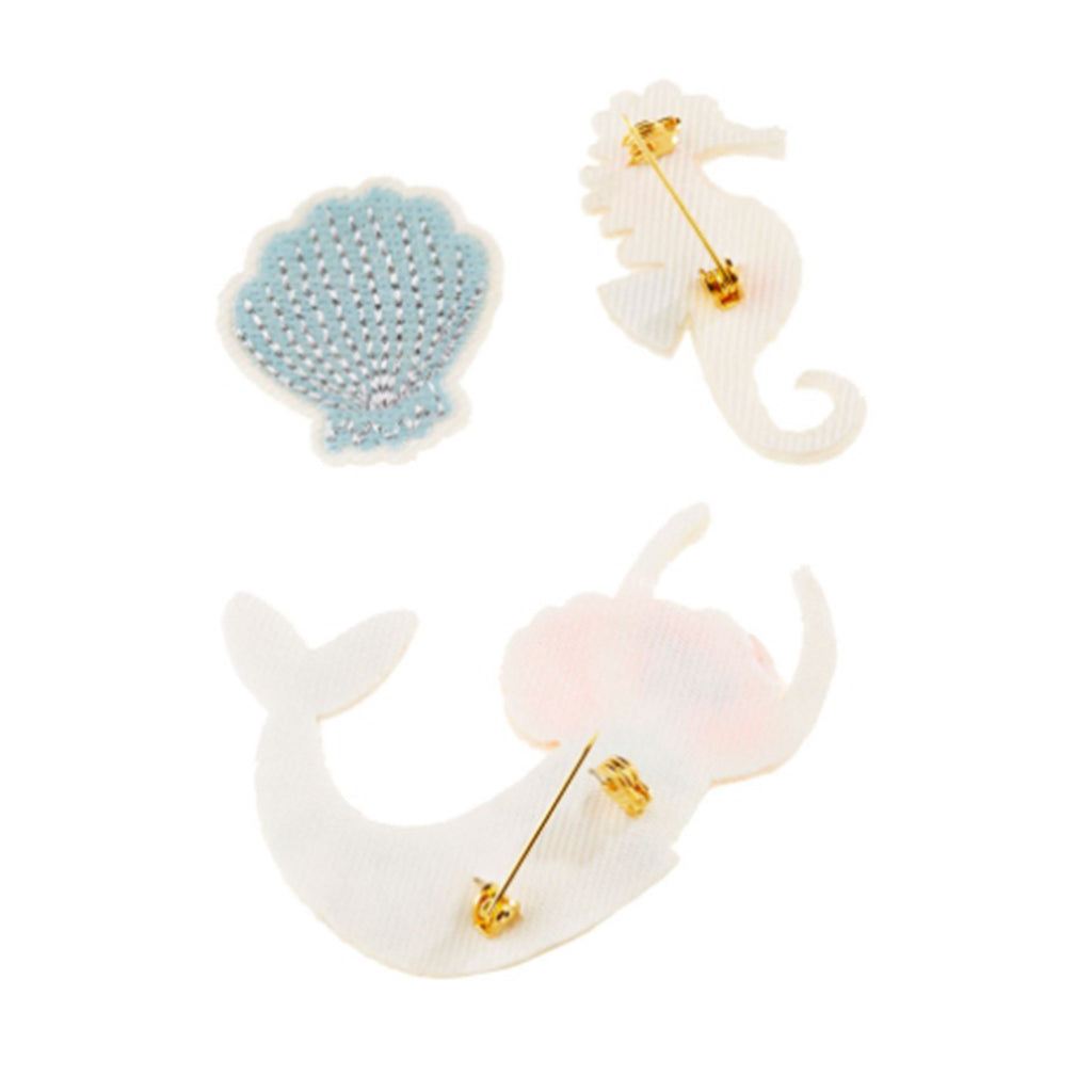 Add a magical touch to clothing or accessories with these beautiful embroidered brooches. Featuring a mermaid, seahorse and shell, all crafted from natural cotton canvas and felt with stunning silver and neon thread details.