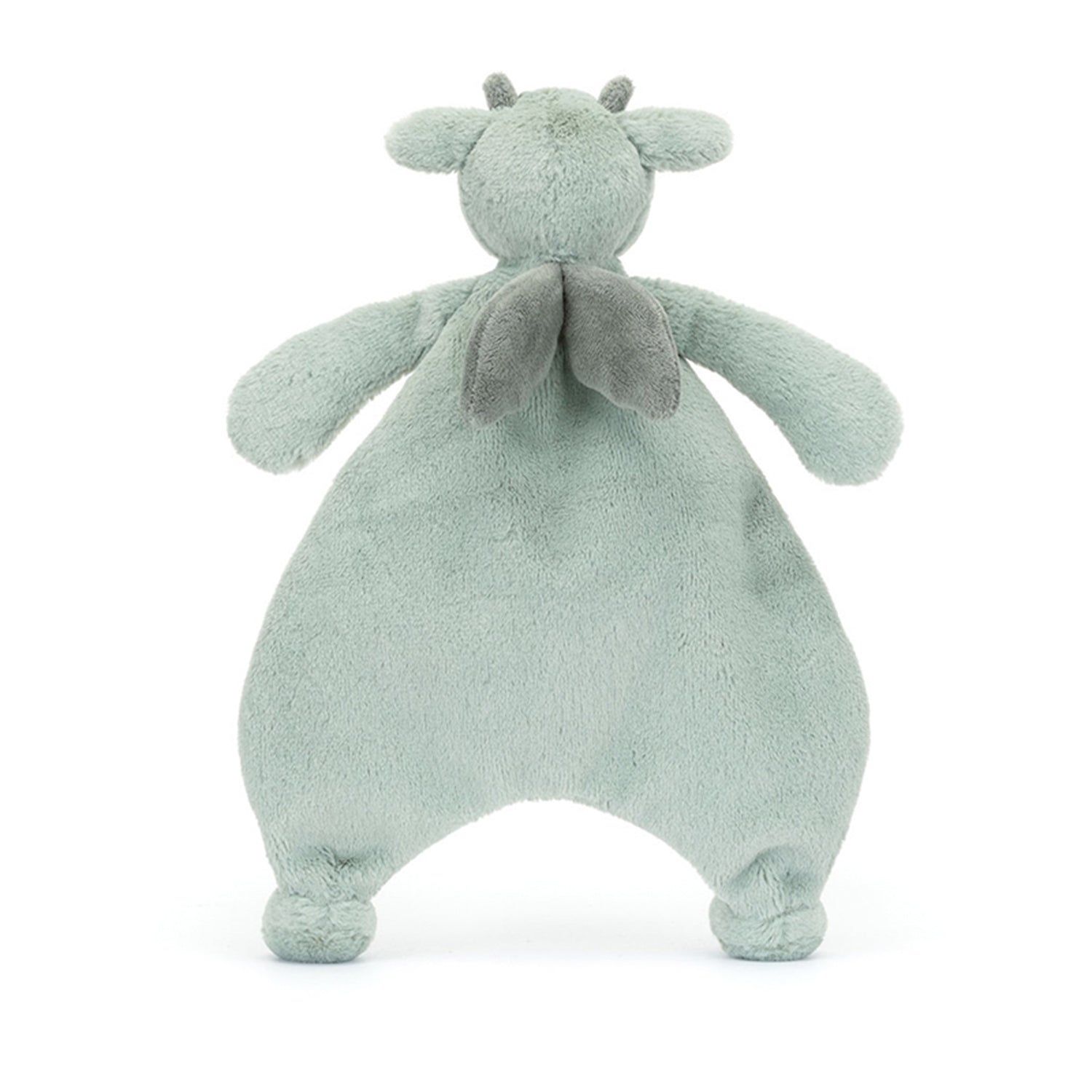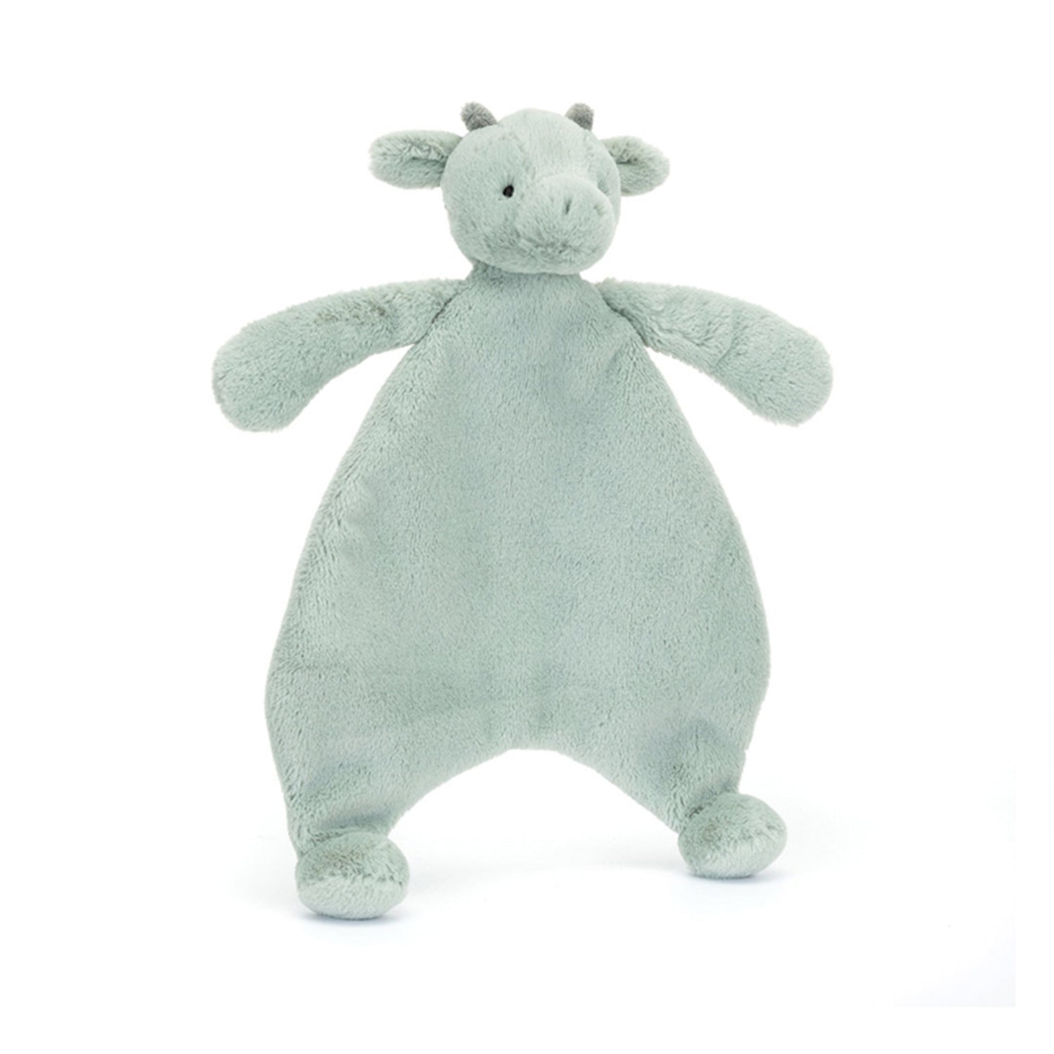 Introduce your little one to the gentle touch of our Bashful Dragon Comforter. Crafted from soft, mossy-green recycled fibres, this dragon provides a comforting sensory experience.