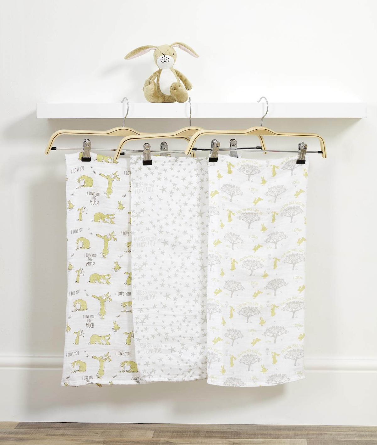 Featuring the Little Nutbrown Hare character from the much-loved picture book Guess How Much I Love You. This Gift Set includes a Little Nutbrown Hare adorable soft toy along with three 100% cotton, machine washable, muslins. Each of the muslins feature beautiful illustrations inspired by the much-loved picture book.