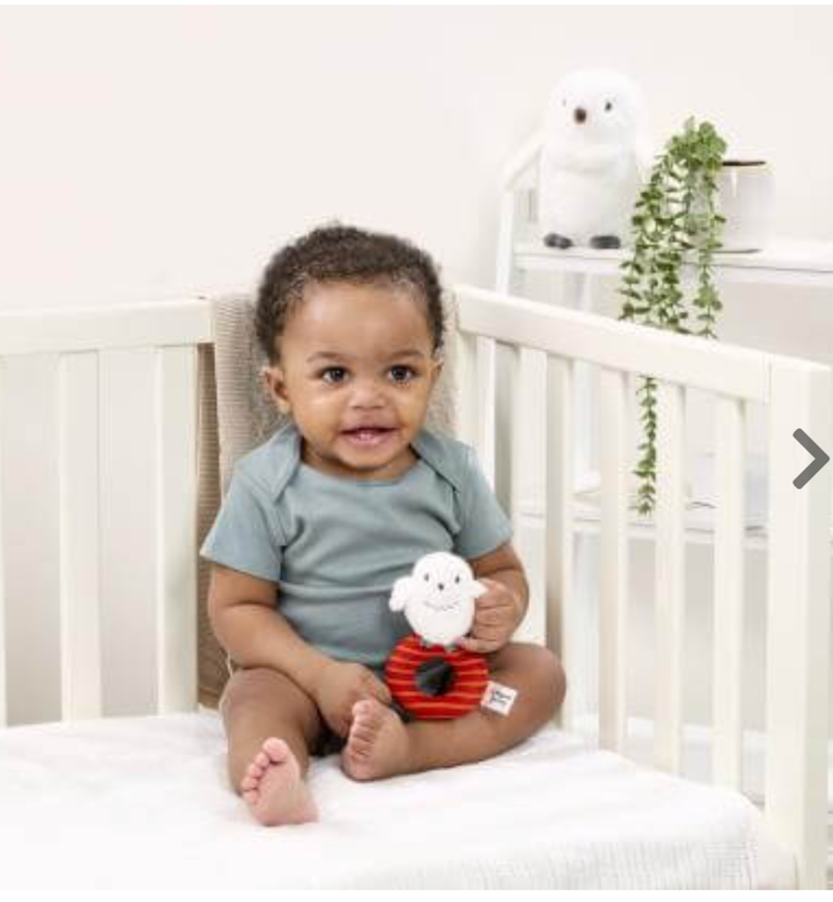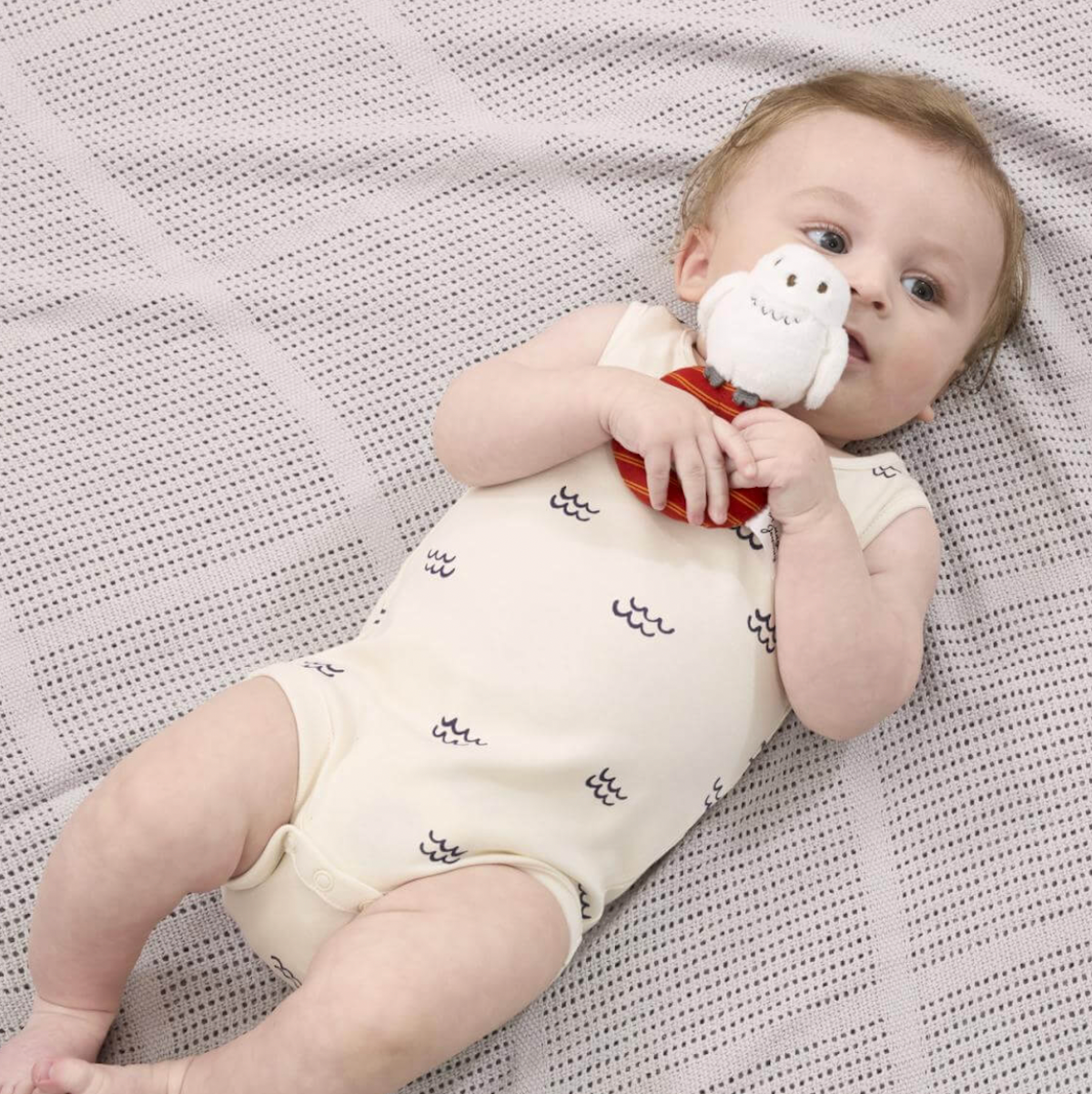 Perfectly sized for small hands, the Hedwig Ring Rattle features Harry Potter's beloved owl in super soft plush, and a gentle rattle sound to capture baby's attention. Encouraging early sensory development, it's a wonderful companion for playtime, and brings a touch of magic to adventures on the go.