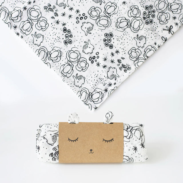 Soft Muslin with black and white Bunny pattern to enhance baby's vision and stimulate brain development.