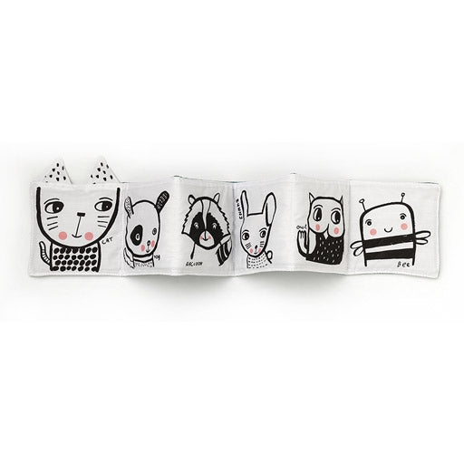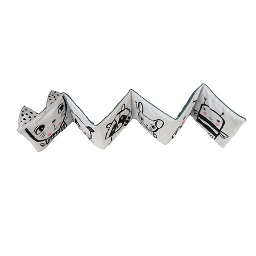 Unravel this beautiful cloth book and meet Cat and his friends! This stunning range of books, illustrated with high contrast black and white bold lines, stimulate visual development with engaging educational content.