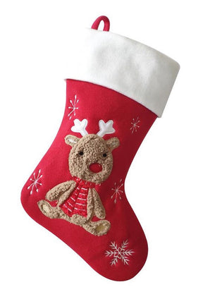 A super cute Woodland Reindeer deluxe red and white appliquéd Christmas Stocking.