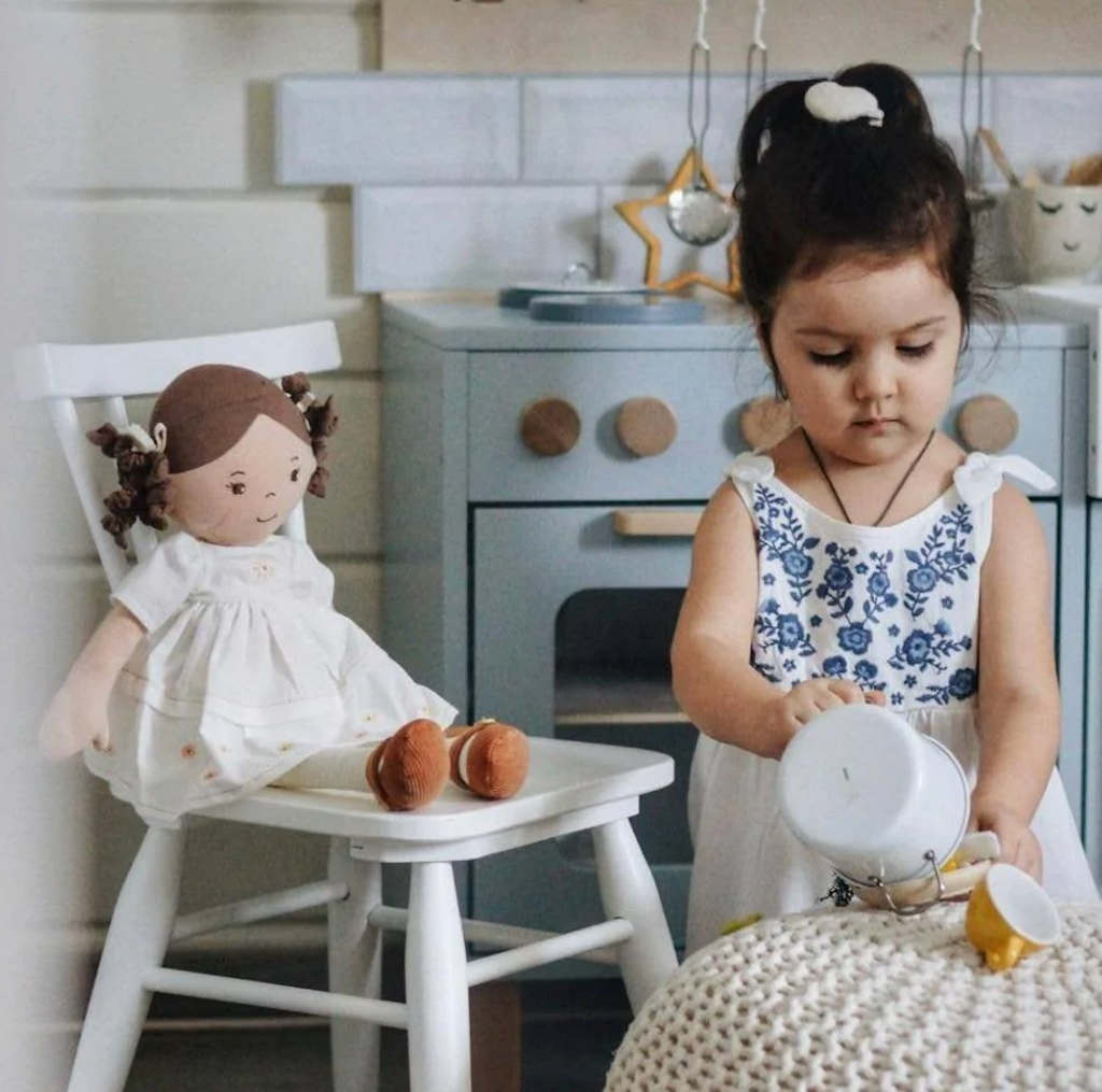 Cecilia Dark Haired Doll in Cream Linen Dress Personalised