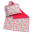 A pretty doll's bedding set for a pram or cot comprising of: a pretty cotton blanket with a matching pillow.