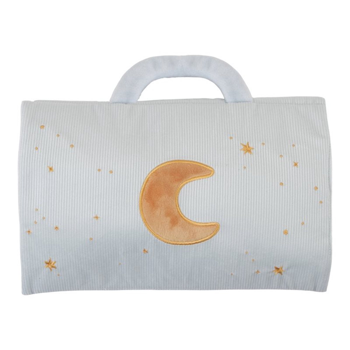 This doll sleepover playset will encourage lots of hours of pretend play. The soft light - blue suitcase folds open into a bed and carries the loveliest sleeping accessories to mimic the bedtime ritual. Your little one can put Rosa in her pajamas, prepare for bedtime with the tooth brush and tooth paste, snuggle with Little Goose and read a bedtime story from the included book with animal illustrations. When it's time to go to sleep, your little one can put on Rosa's sleeping mask and cover her with the teddy blanket. Night Night Rosa!