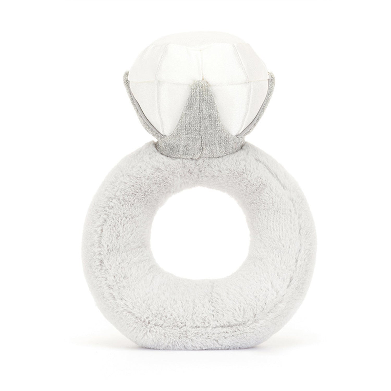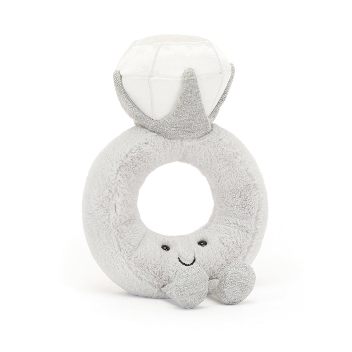 Say "I do!" to the Amuseables Diamond Ring! This plush solitaire, featuring a satin-soft diamond, glitter jersey sparkle, and a velvety silver fur band, is the perfect whimsical engagement gift.