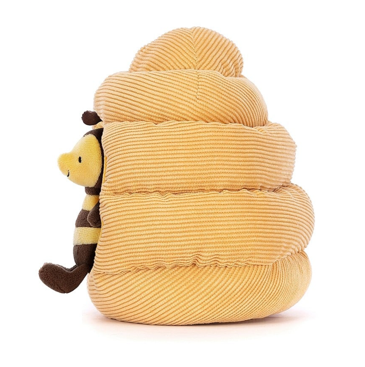 This sweet little bee has bobbly feelers, a perky nose and soft beige wings and lives in a snuggly quilted cord hive but can pop in and out anytime!