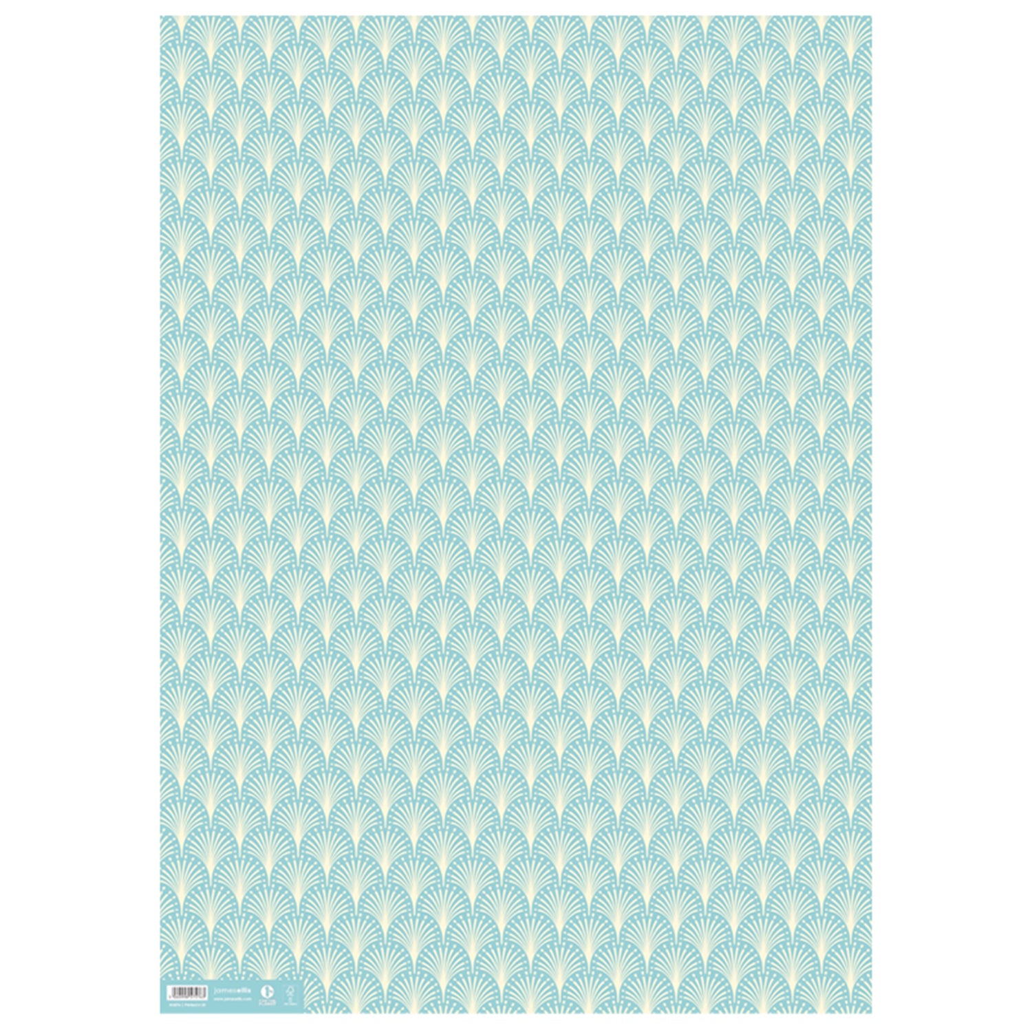 This premium wrapping paper showcases a luxurious Art Deco design, featuring an elegant blue and cream geometric design, perfect for any special occasion.